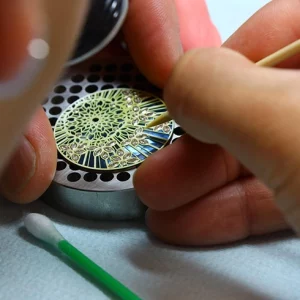 Notre savoir-faire repose sur une passion pour l’excellence et la précision. Grâce à notre équipe et à notre expérience, nous maîtrisons chaque étape de la fabrication du cadran, du choix de la matière première à l’assemblage final. Nous sélectionnons les plus belles pierres et nacres à travers le monde, en veillant à leur qualité et à leur durabilité.